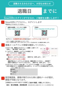 部署の情報セキュリティ管理者(師長等の所属長)の指示に従い、情報セキュリティハンドブックの返却など、退職日までにご対応ください。病院から購入したUSBをお持ちの方は、情報システム課にてデータ内容のチェックを受けてください。