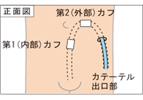 テンコフカテーテル留置後1週間程度 保存的に創傷が治癒するのを待ち1週間後より貯留を開始する方法。従来の方法に比べ、入院期間を短縮できる、手術は1回ですむなどのメリットがあります。
