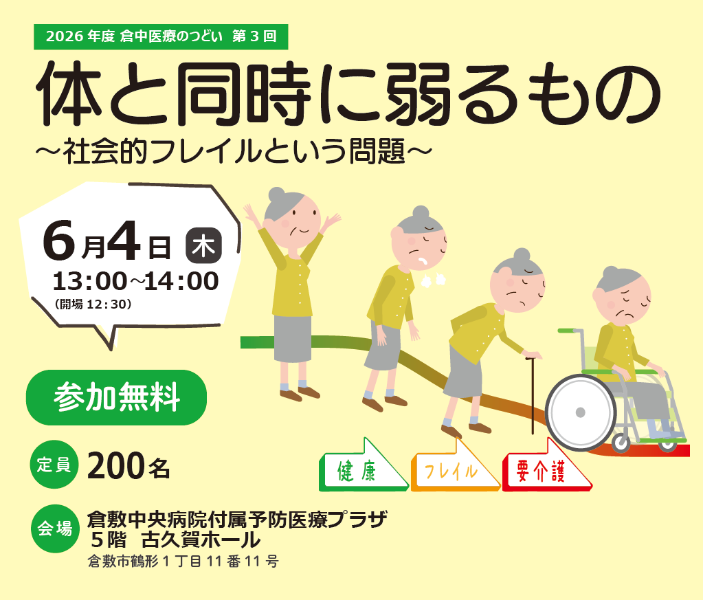 市民公開講座 倉中医療のつどい「体と同時に弱るもの~社会的フレイルという問題~」