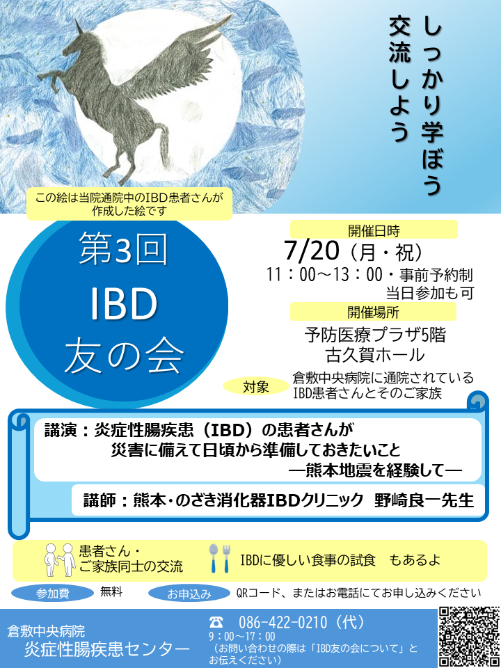 | 対象 | 当院に通院されているIBD患者さんとご家族の方 参加無料 |