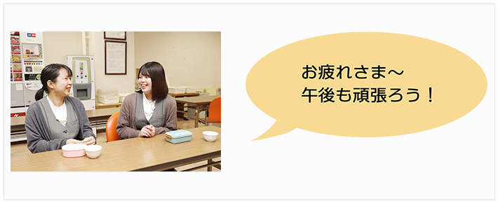 45分間の休憩。職員食堂で同僚や先輩たちとランチタイム。