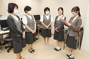 8:30*出勤 朝礼*朝礼で、当日来院予定患者さんの情報共有や身だしなみチェックを行います。