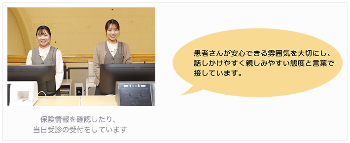 *マイナ保険情報確認、受付業務*患者さんやご家族に寄り添った対応を心がけています。