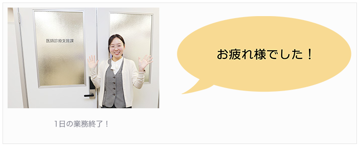 8:45*朝礼*部署のスタッフと朝礼を行います。業務の情報共有や接遇、身だしなみのチェックを行います。