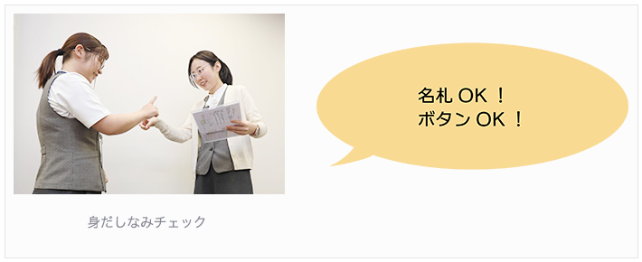 8:45*朝礼*部署のスタッフと朝礼を行います。業務の情報共有や接遇、身だしなみのチェックを行います。