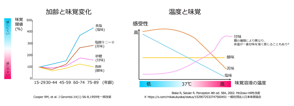 また、食べるものの温度によっても味覚の感じ方は変わります。例えば、熱いものより冷たいものの方が塩味を感じやすくなります。