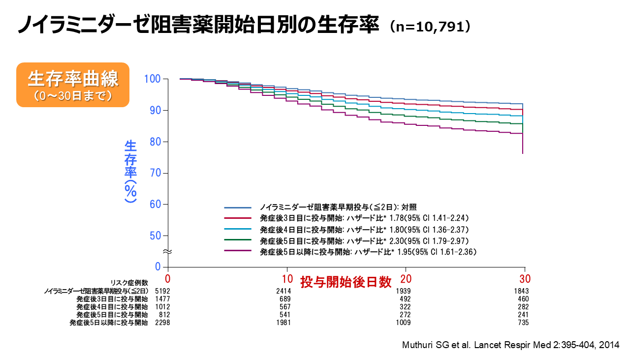 重要ポイントは、発症後2日(48時間)以内の投与開始が望ましいことです。実際に、2日以内の早期投与と、それ以降に開始した場合では、早期投与の生存率が高かったことが示されています。