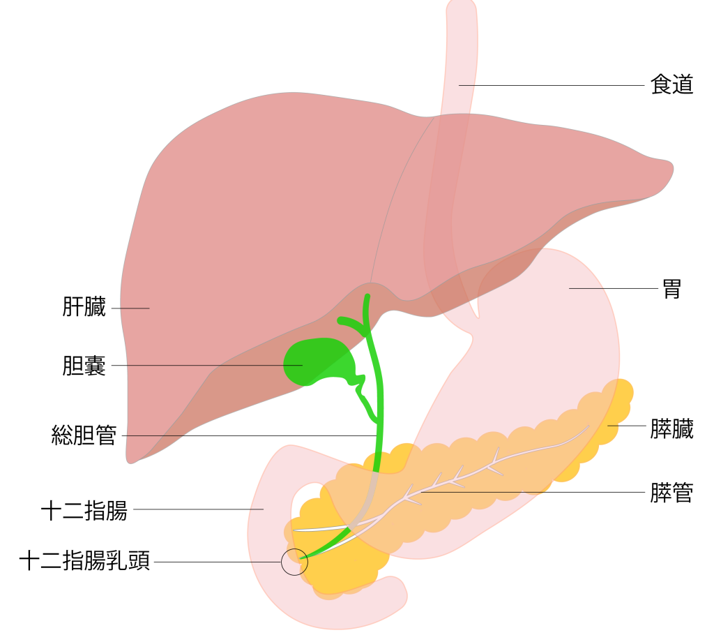 ・外分泌機能:食べたものの消化を助ける「膵液(消化酵素)」を作り、十二指腸へ送り出す。