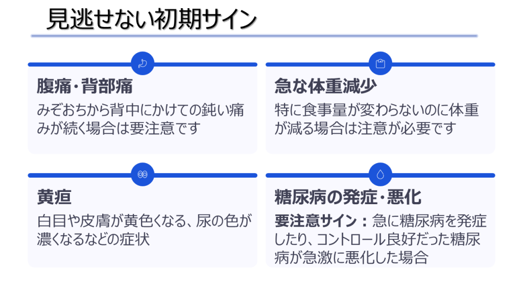 膵臓がんの早期発見を阻む最大の要因は、初期に痛みや出血といった自覚症状がほとんど出ない特性にあります。膵臓は肝臓とともに「沈黙の臓器」と呼ばれ、かなり進行するまで症状が現れにくいです。また、一般的な検診における以下の課題も発見を難しくしています。