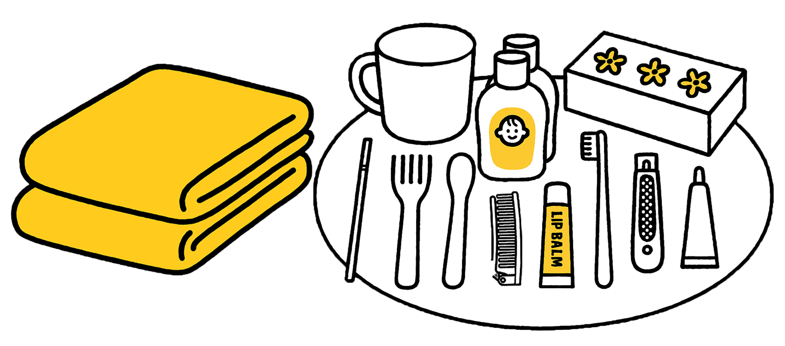 アメニティ Amenities 病院でもらえるもの ナプキン(大・中・小)赤ちゃんのおへそ消毒セット赤ちゃんのおむつ、おしりふき 病院で借りられるもの 無料ドライヤー(共用)赤ちゃん用の服やリネン哺乳びん、ミルク、搾乳機授乳クッション 有料(アメニティセット 435円/日) アメニティセットご利用で手ぶらでご入院いただけます(下着のみご自身で準備なさってください) パジャマ バスタオル、フェイスタオル 洗面用具(コップ、歯ブラシ、歯みがき粉) 食器(箸・スプーン・フォーク) ウエットティッシュ ティッシュ リンスインシャンプー、ボディソープ 必要時は追加いたしますので、お気軽にスタッフまでお声掛けください。利用日数は選べます。入院料金とは別途のお支払いとなります。 ご自身で準備していただくもの 退院時に着て帰るための、赤ちゃん用の服やおくるみ赤ちゃん用の爪切り詳しくは外来保健指導でお伝えいたします。