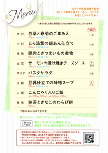 大豆製品や魚介類を中心に、塩分や脂質に配慮しつつも、素材本来のうま味やだしのおいしさを引き立てた献立となっております。