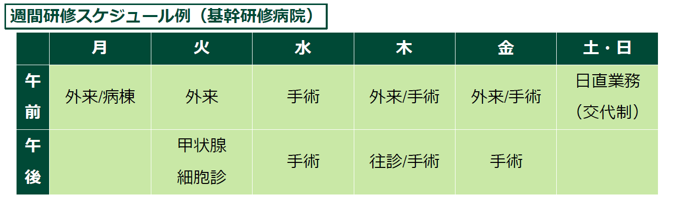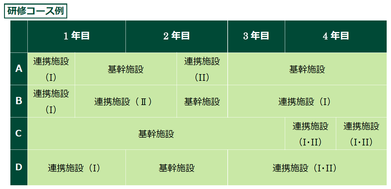 なお、研修基幹施設での研修は6ヶ月以上、地域医療研修は3ヶ月以上行うことが必須とされています。また、当プログラムでは研修基幹施設での研修、地域医療研修を連続して行うことが必要とされます。