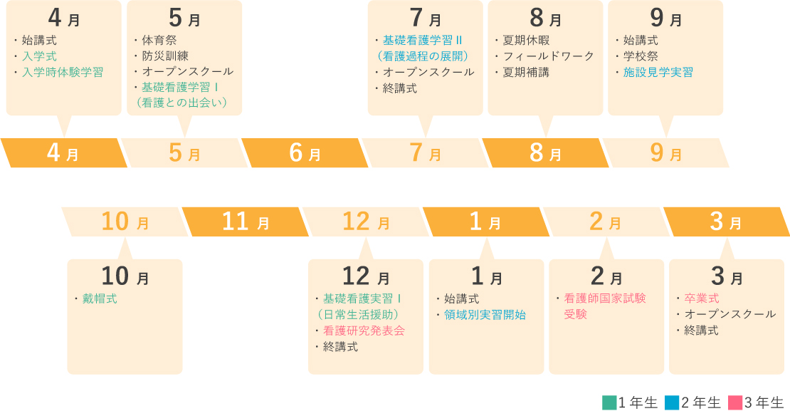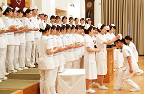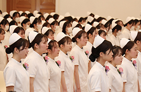 看護師の象徴であるナースキャップを一人一人戴帽し、ナイチンゲールの継灯をすることで、 看護師を目指すものとしての誇りと使命を自覚し、 決意を新たにします。