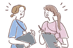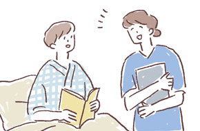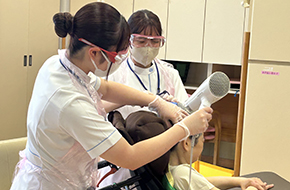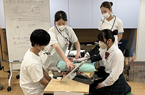 看護師に同行しながら、 病院で療養している人の理解を深め、医療チームの中での看護の役割について学んでいきます。